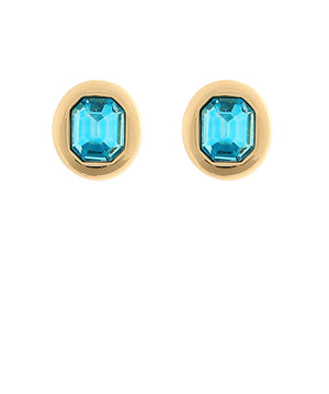 Emerald Shaped Blue Stud Earrings