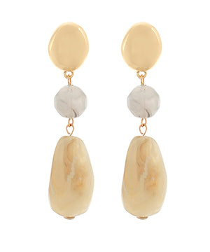 Natural and Grey Marbled Long Drop Earrings