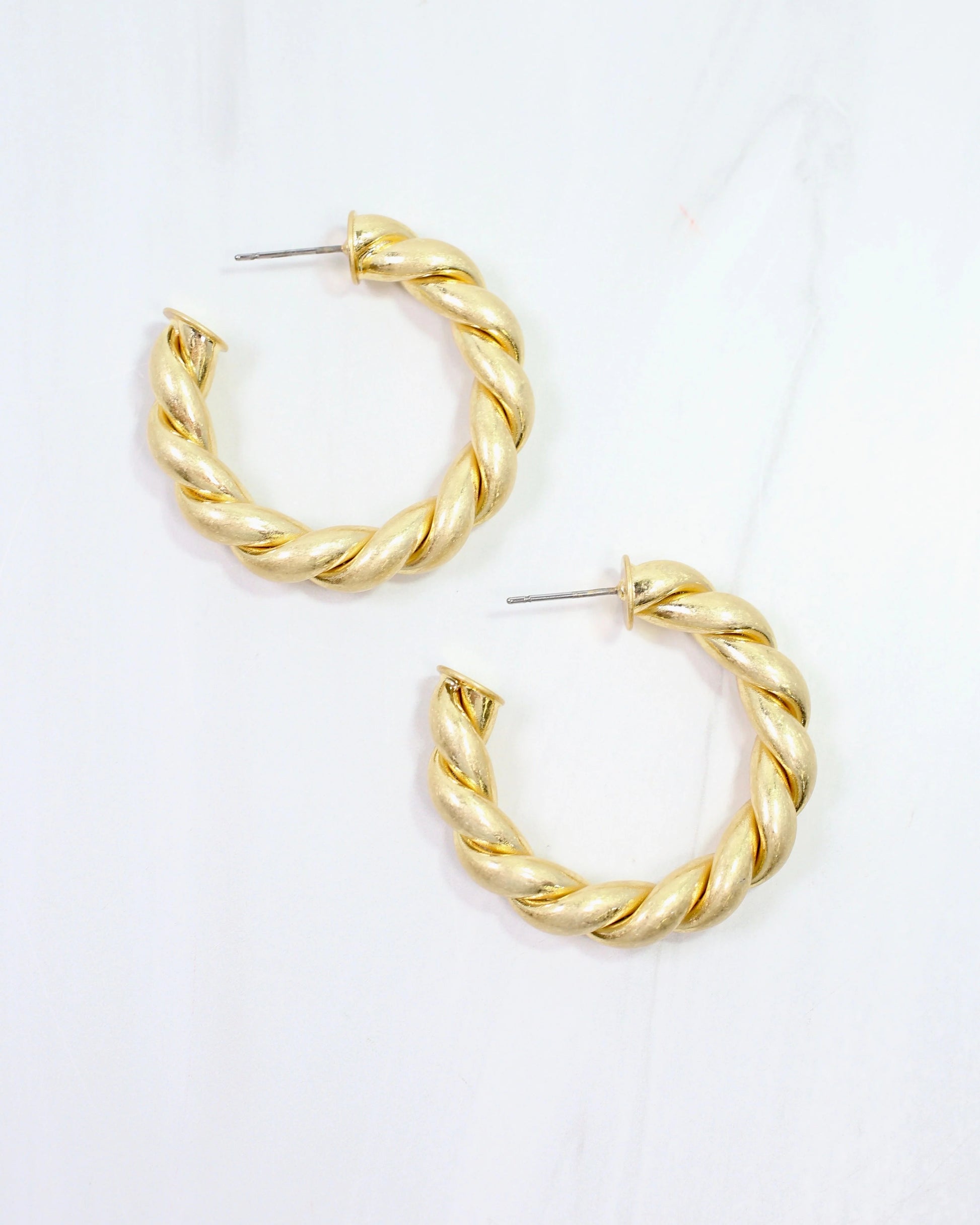 Elevate your style with the Raylee Twisted Hoop in Matte Gold. These lightweight hoops feature a beautiful twisted design, expertly gold-dipped for a luminous finish. Their classic yet fashionable look makes them perfect for any occasion, adding a subtle touch of elegance to your everyday wardrobe.