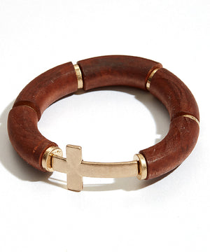 Wood Beaded Cross Bracelet